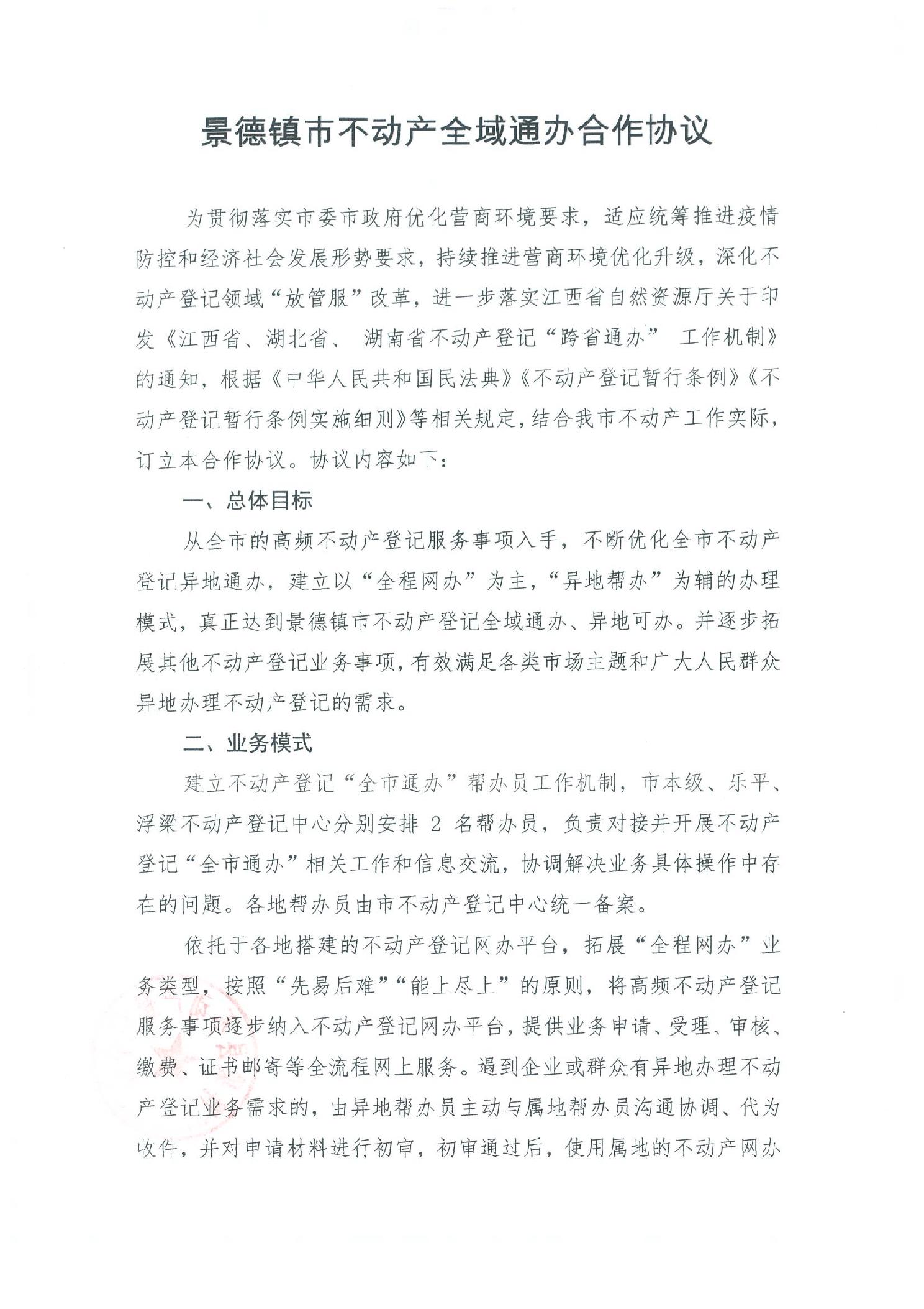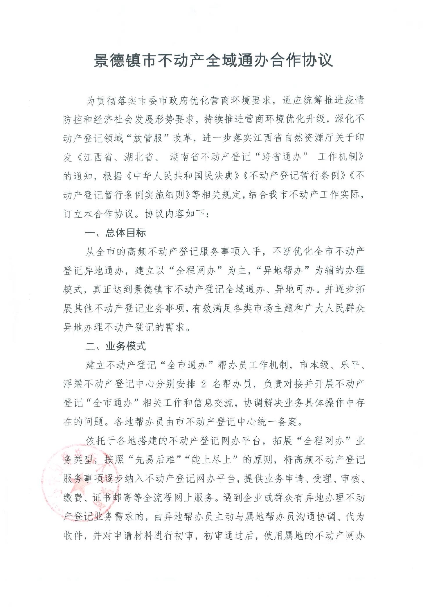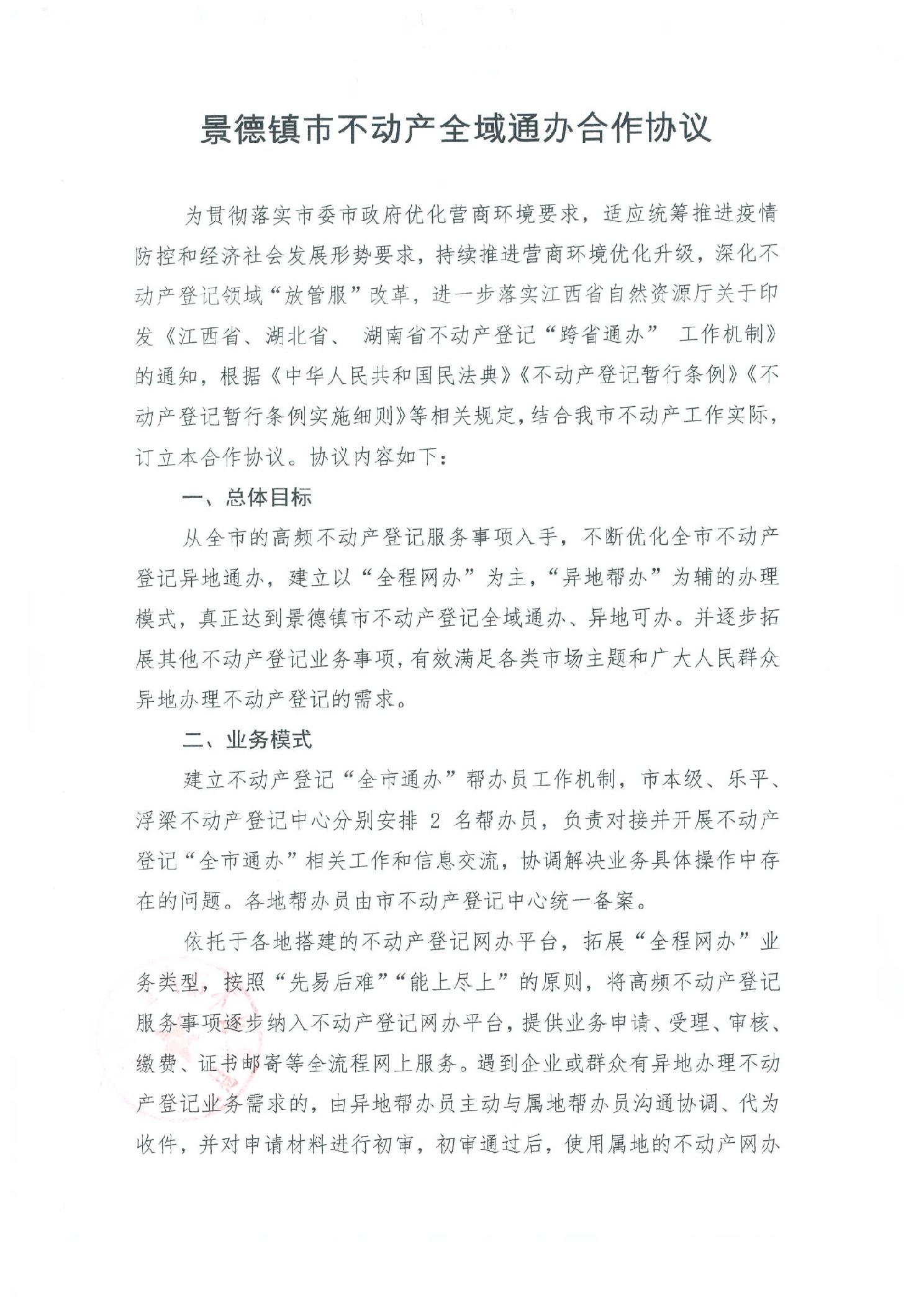 景德镇市不动产全域通办合作协议