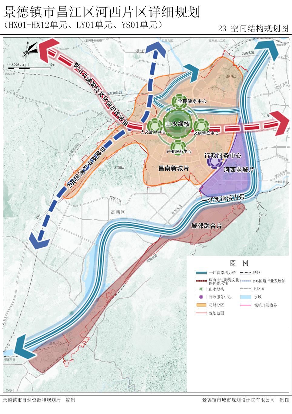 轴带:珠山大道陶瓷文化保护传承轴、206国道产业发展轴、一江两岸活力带;