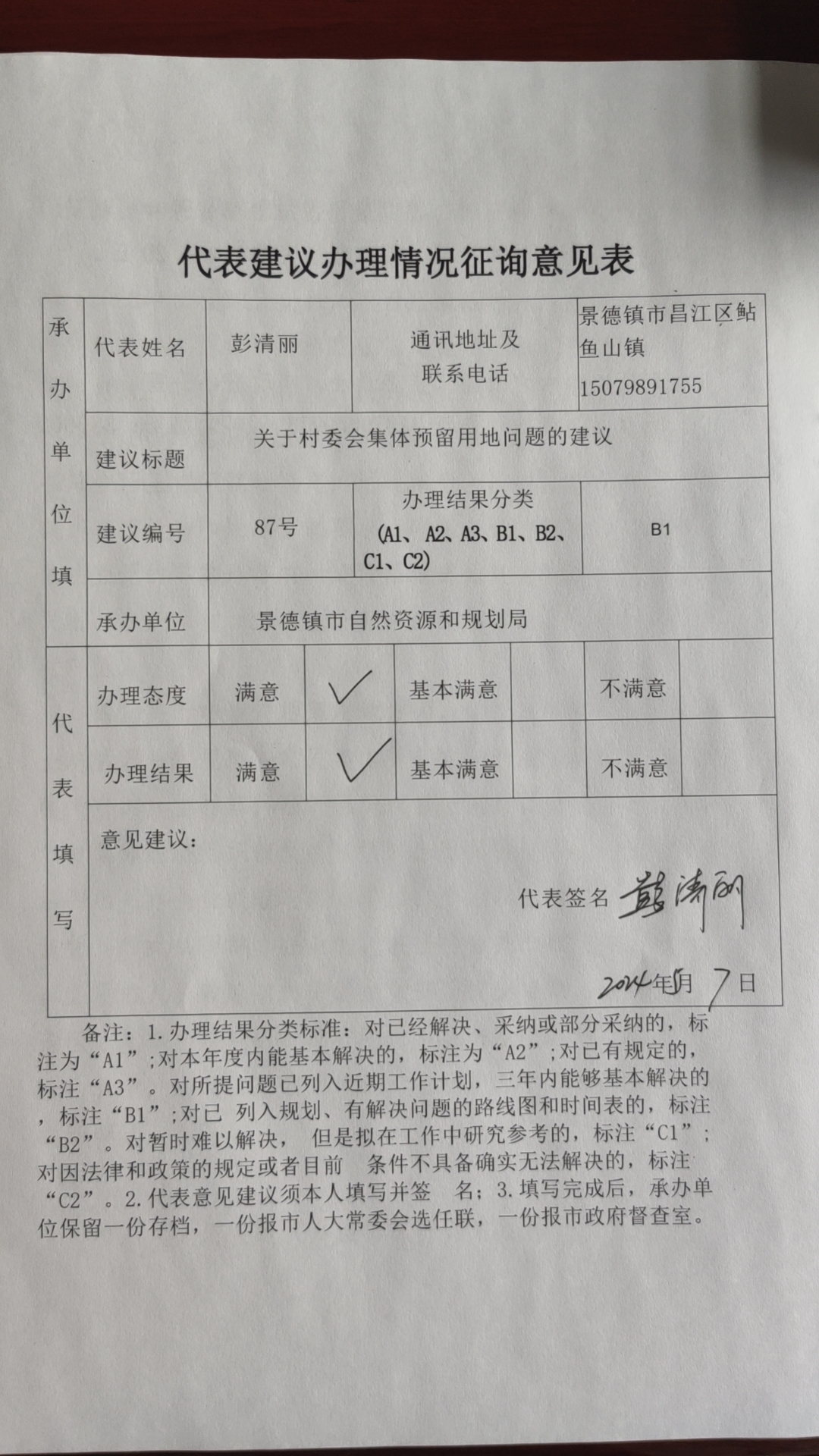 附件:人大代表建议办理情况征询意见表
