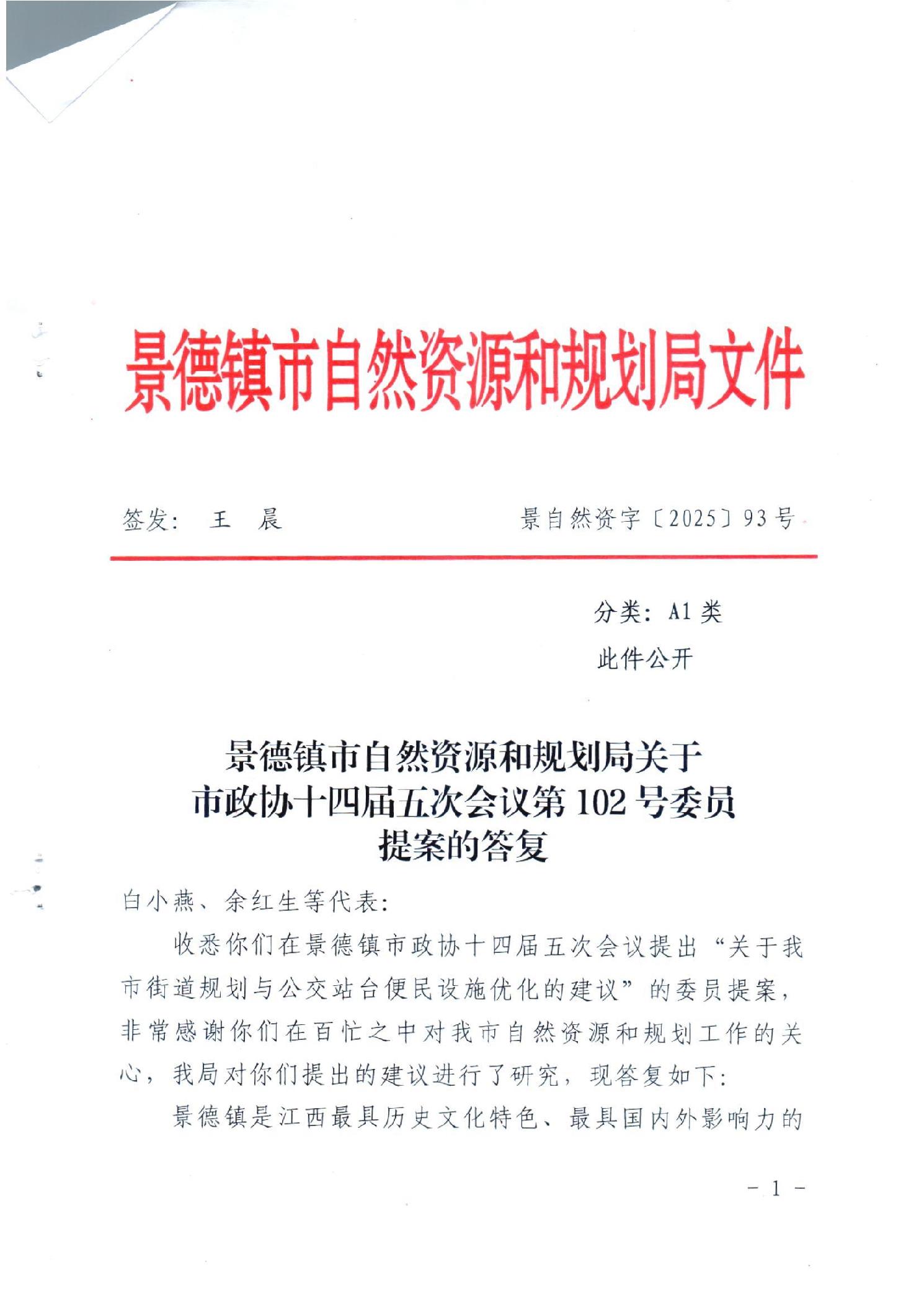 景德镇市自然资源和规划局关于市政协十四届五次会议第102号委员提案的答复