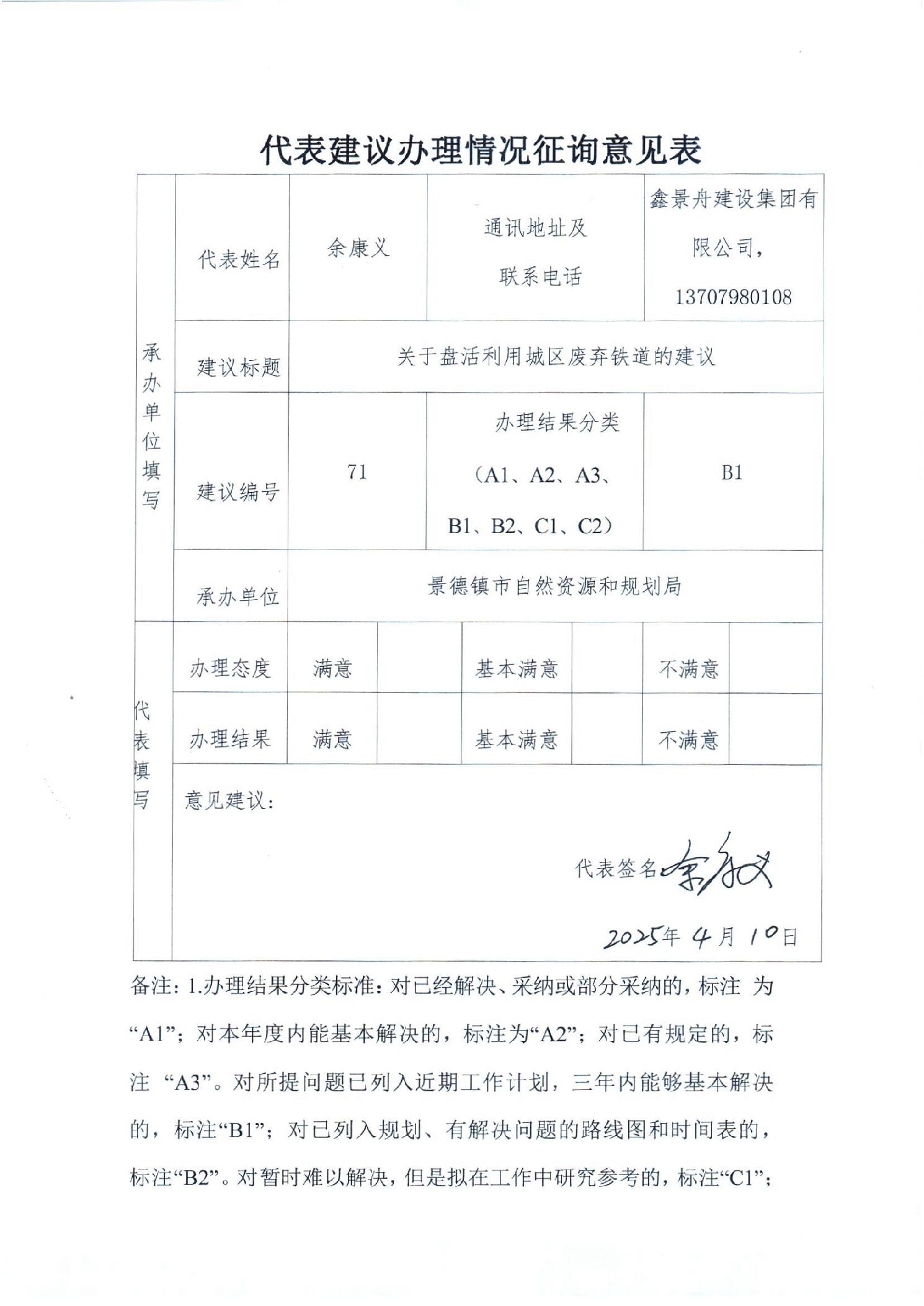 景德镇市自然资源和规划局关于市十六届人大五次会议第71号建议的答复