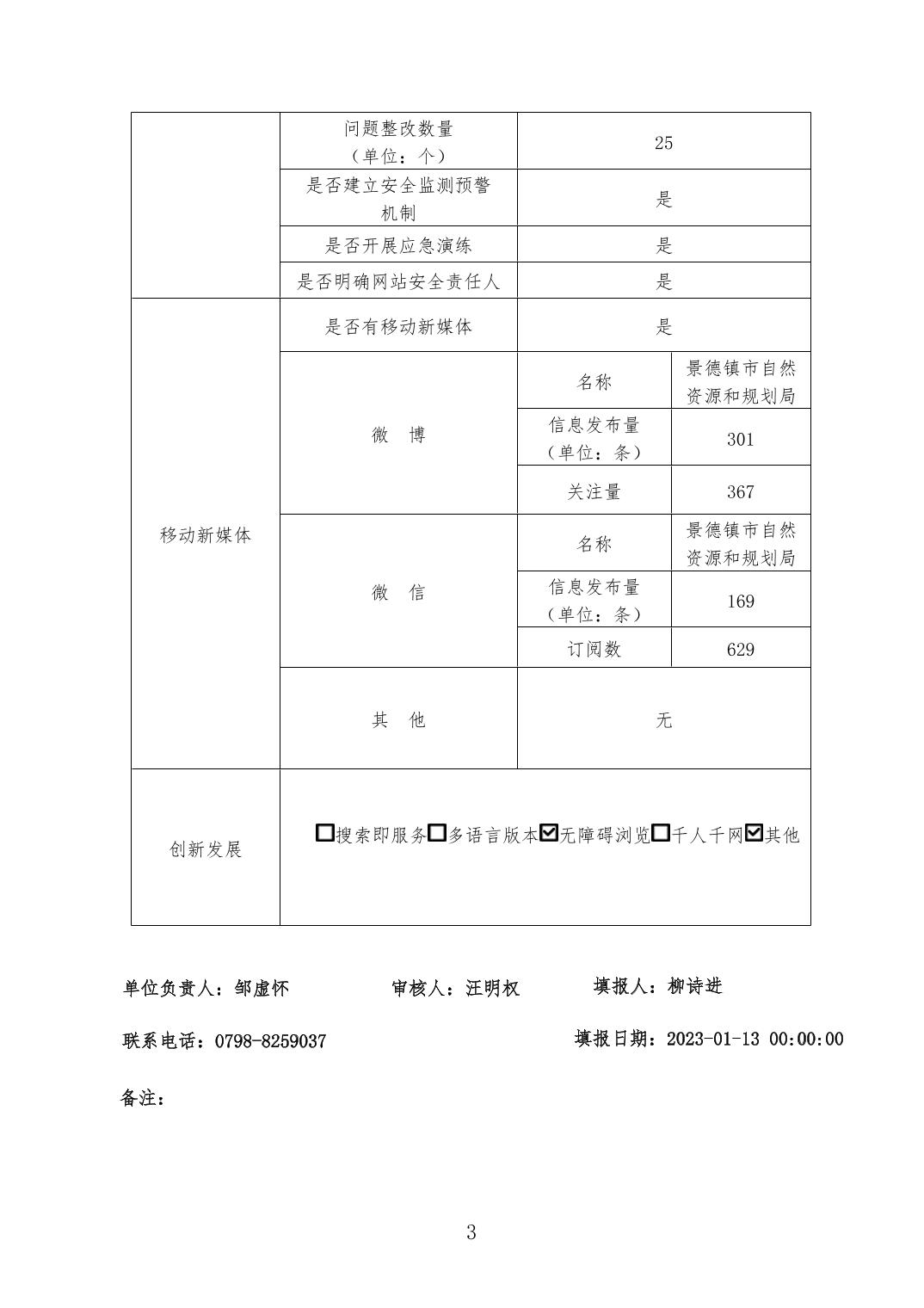 2022年度景德镇市自然资源和规划局政府网站工作年度报表
