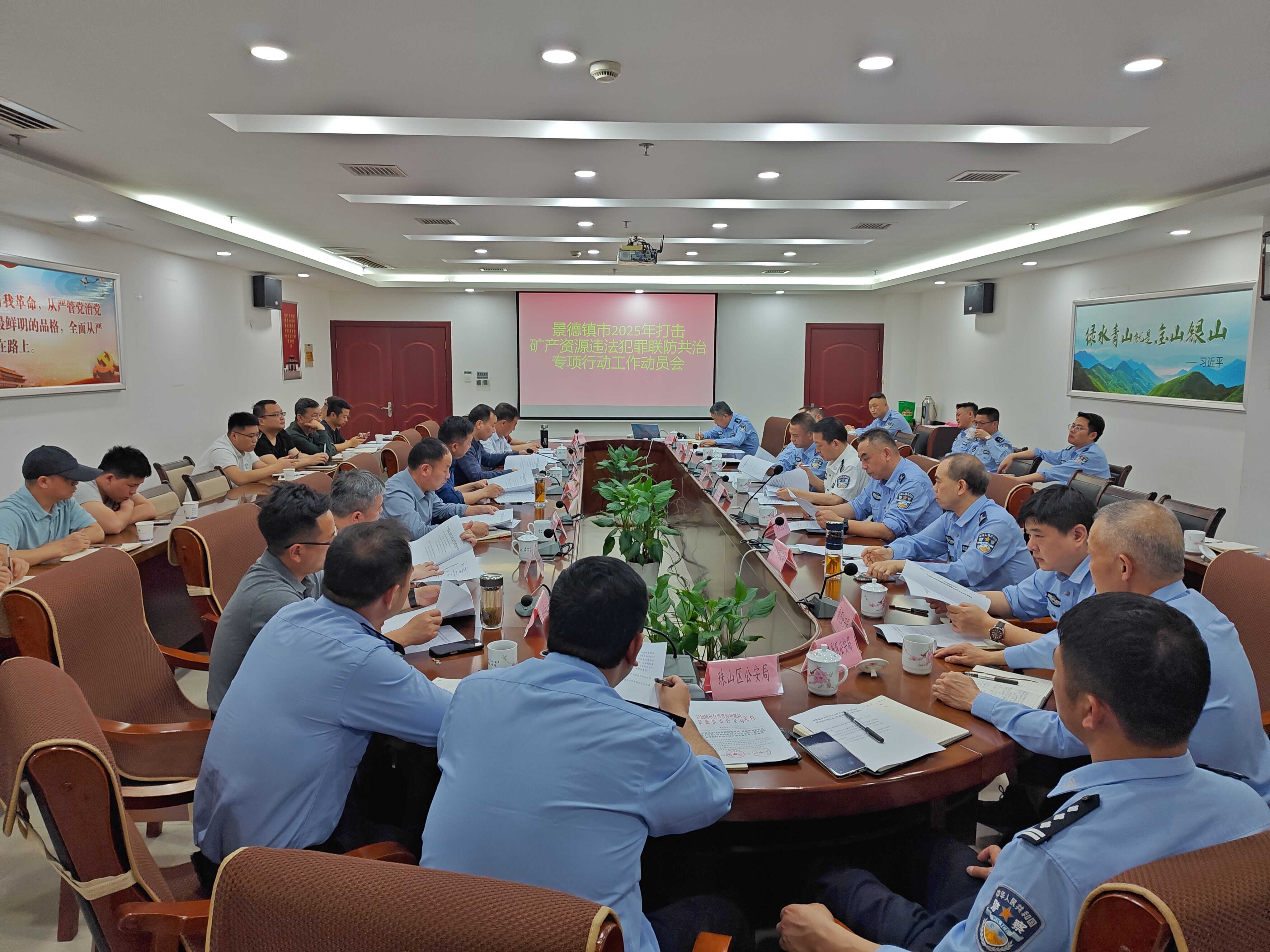 2025年4月29日,景德镇市2025年打击矿产资源违法犯罪联防共治专项行动动员部署会在景德镇市自然资源和规划局3楼会议室召开。市级打击矿产资源违法犯罪联防共治专项行动工作领导小组领导及相关责任人,县级自然资源和规划部门、公安部门相关责任人参加会议。