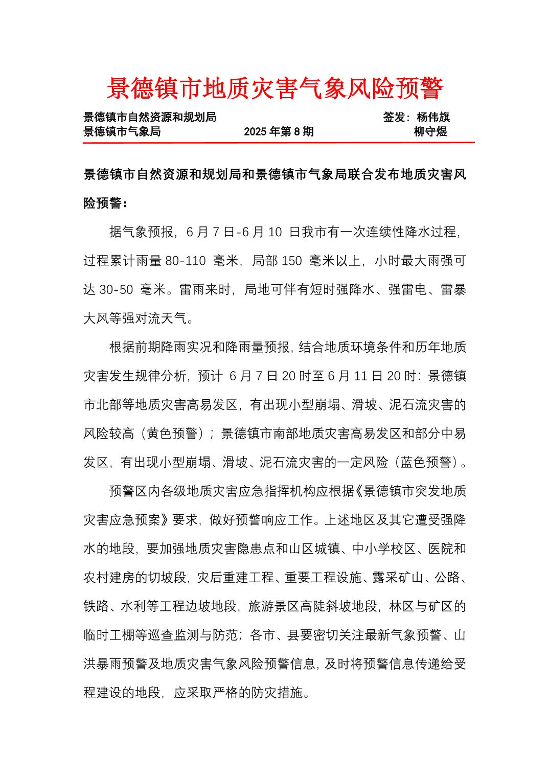 地质灾害气象风险预警2025年第8期