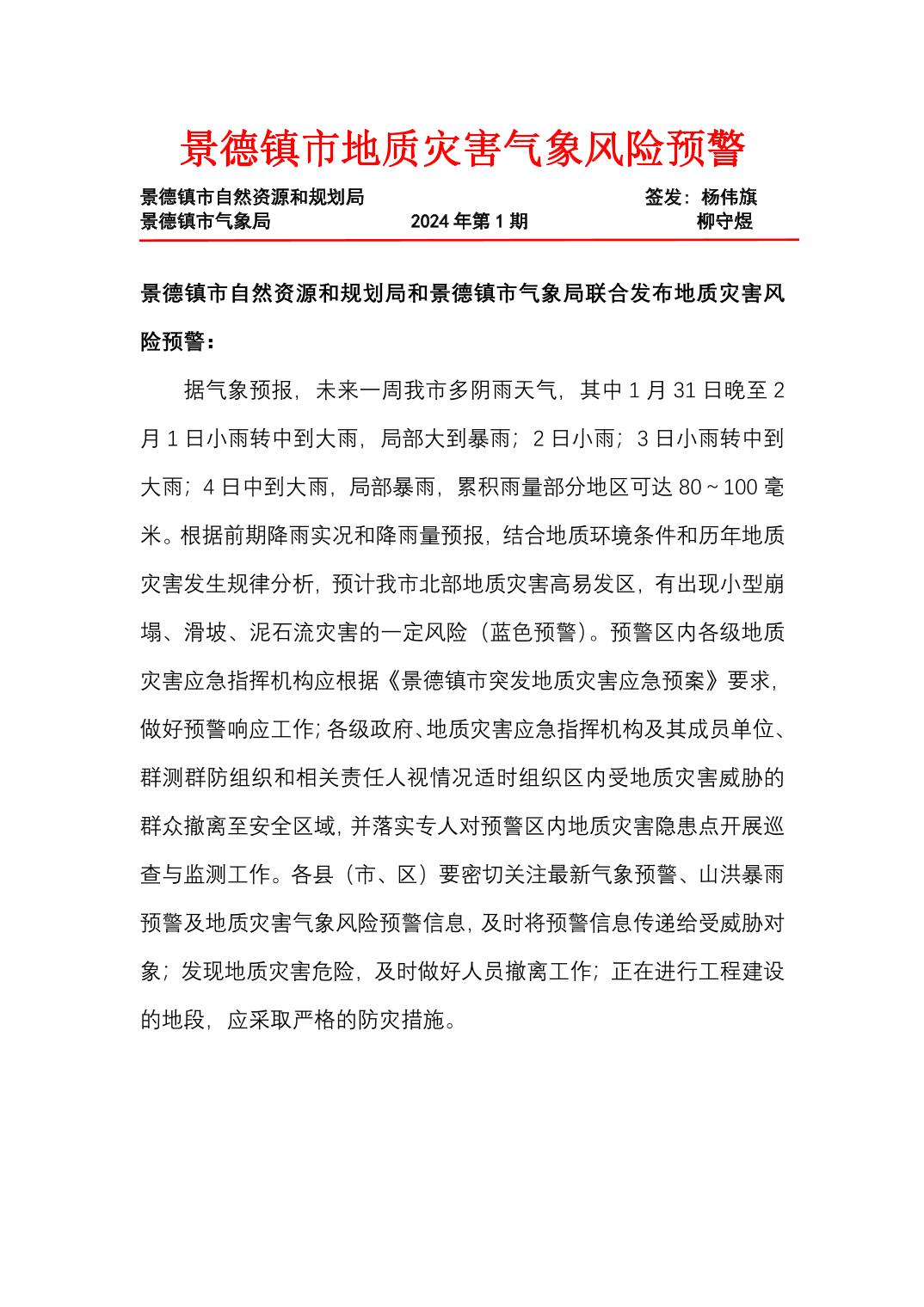 地质灾害气象风险预警2024年第1期