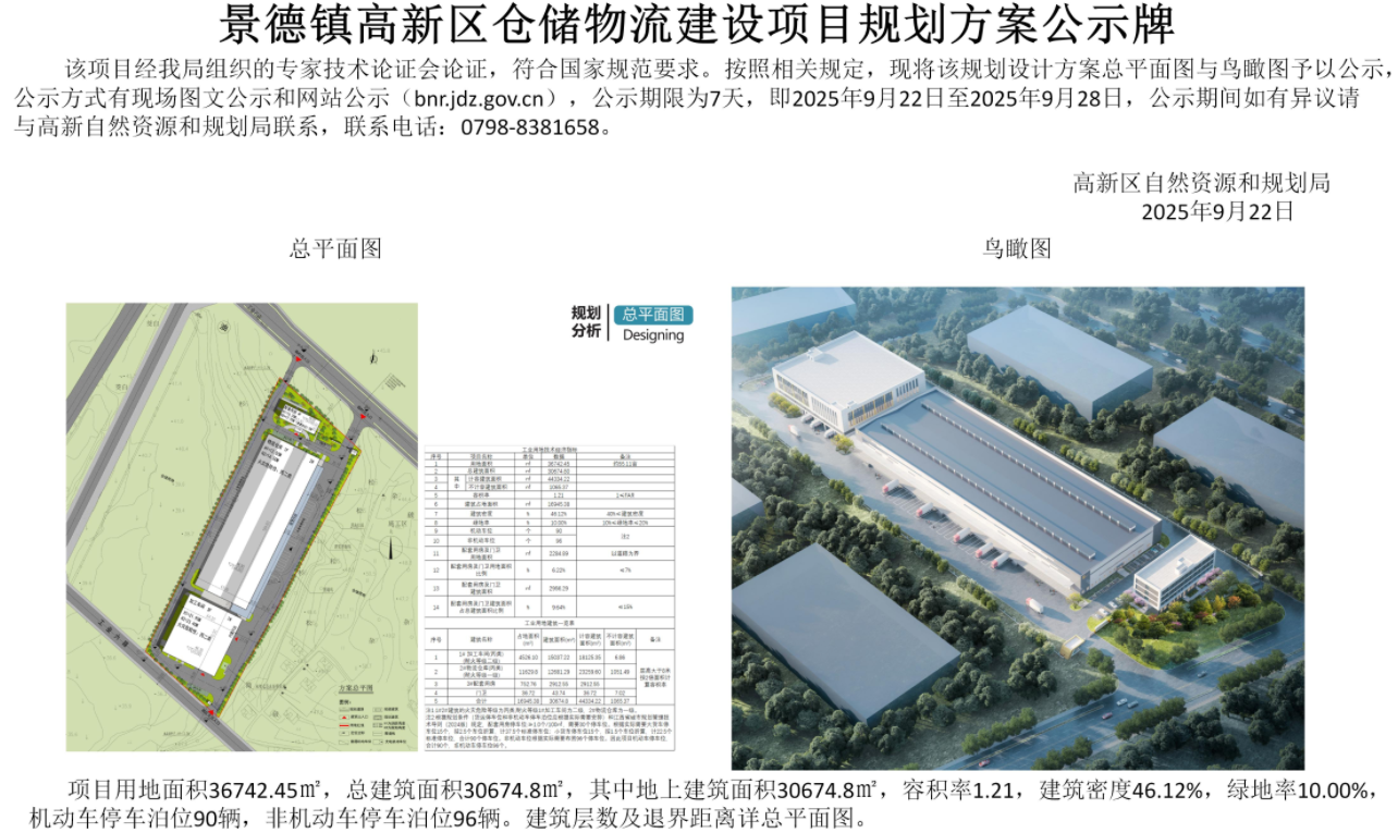 景德镇高新区仓储物流建设项目规划方案公示牌