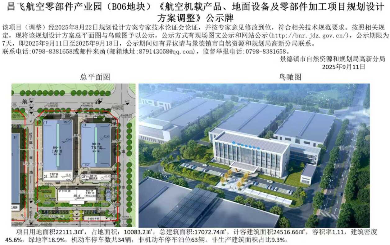 昌飞航空零部件产业园(B06地块) 《航空机载产品、地面设备及零部件加工项目规划设计方案调整》公示牌