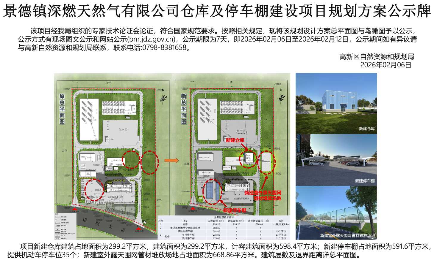 景德镇深燃天然气有限公司仓库及停车棚建设项目规划方案公示牌