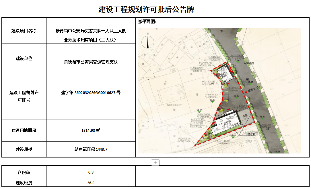 景德镇市公安局交通管理支队建设工程规划许可批后公告牌