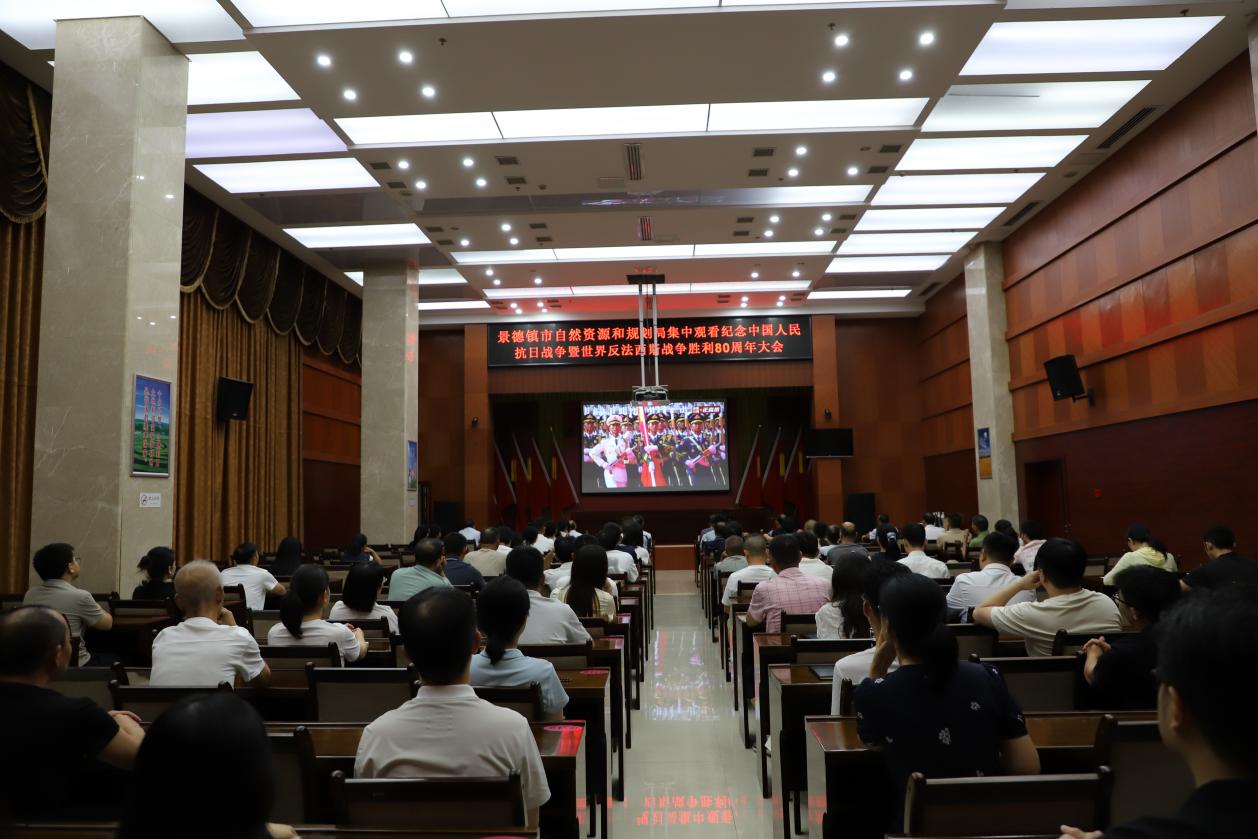 9月3日,纪念中国人民抗日战争暨世界反法西斯战争胜利80周年大会在北京天安门广场隆重举行。景德镇市自然资源和规划局通过组织集中收看直播的方式,共同见证这一盛况。各县(市)局、各分局、局属(管)各单位纷纷响应,在全系统内掀起一股爱国热潮,展现出全系统干部职工昂扬向上的精神风貌。