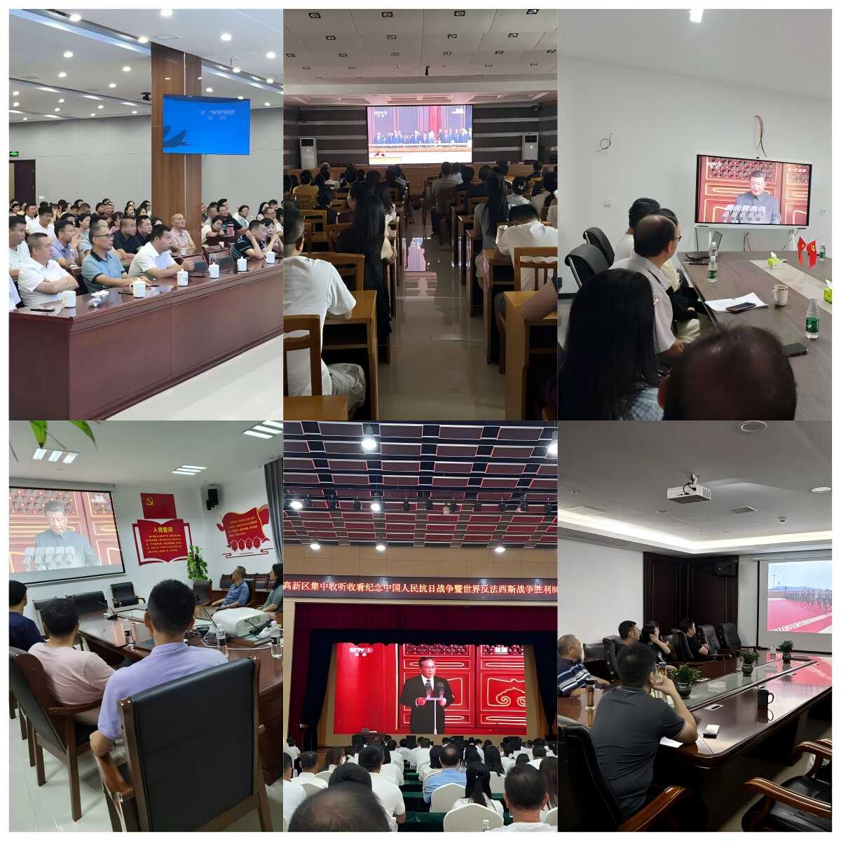 上午9时整,纪念大会正式开始。大会现场庄严的氛围透过屏幕传递到每一个角落。大家全神贯注倾听习近平总书记的重要讲话,一致认为习近平总书记的重要讲话带领我们回顾了中国人民抗日战争的悲壮历史,宣示了铭记历史、开创未来的主基调,向世界昭告了正义必胜、和平必胜、人民必胜的伟大真理,深刻感受到了祖国从站起来、富起来到强起来的伟大飞跃,更清晰认识到作为党员干部的责任与担当,从抗战先辈用热血守护家国,到如今我们用行动服务社会,不同的时代坐标,承载着同样的使命传承。