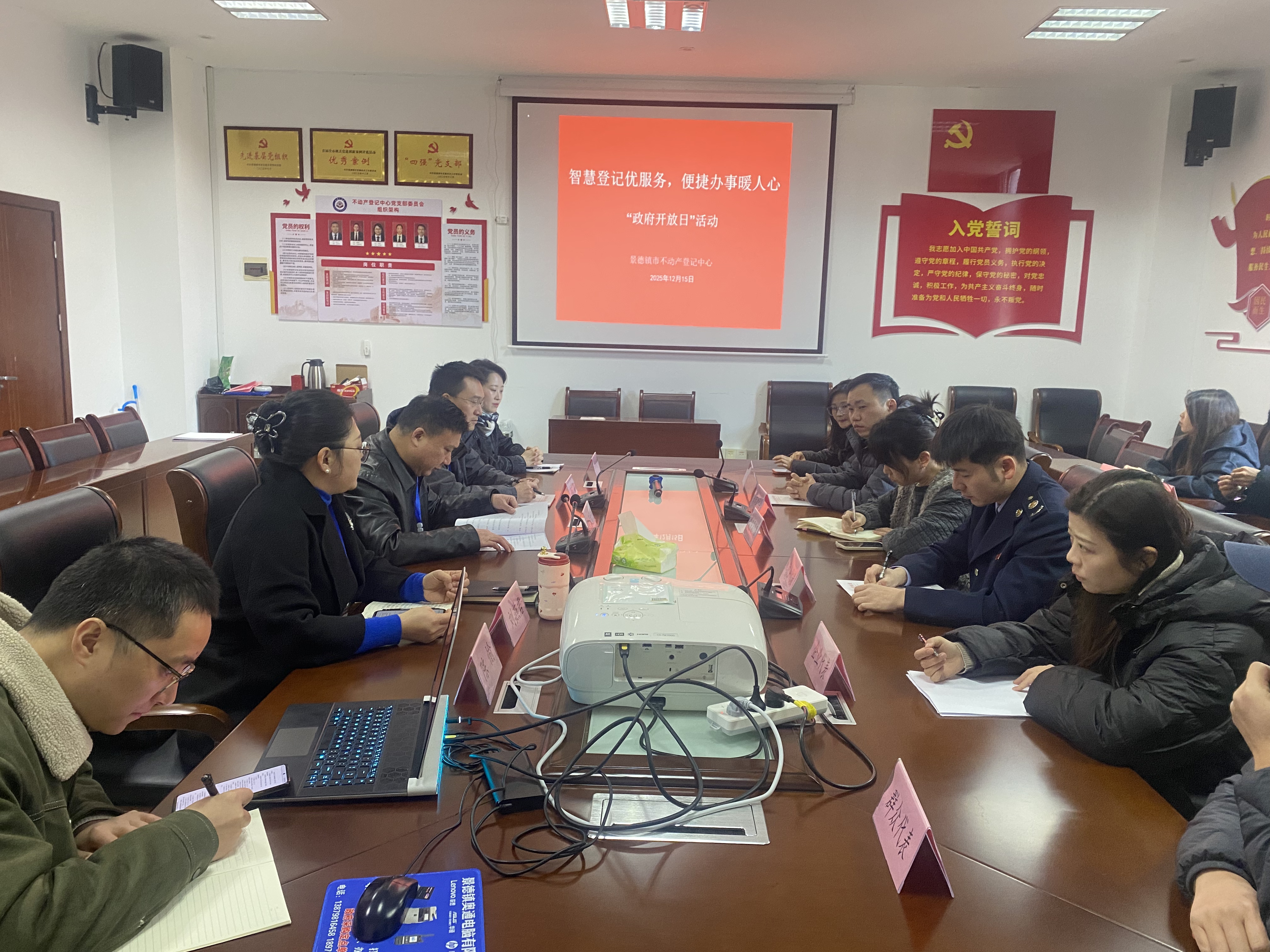 为进一步提升政务服务水平,展示不动产登记领域智慧化服务成果,增强政府工作透明度,增进公众对不动产登记工作的了解,搭建政府与企业、群众的沟通桥梁,助力不动产登记领域营商环境优化升级,市不动产登记中心于12月15日上午举办以“智慧登记优服务,便捷办事暖人心”为主题的“政府开放日”活动。活动采用现场观摩、工作汇报、讨论交流等形式开展,公积金、税务、政务部门代表及企业、群众代表受邀参与,近距离感受不动产登记服务的创新与便捷。