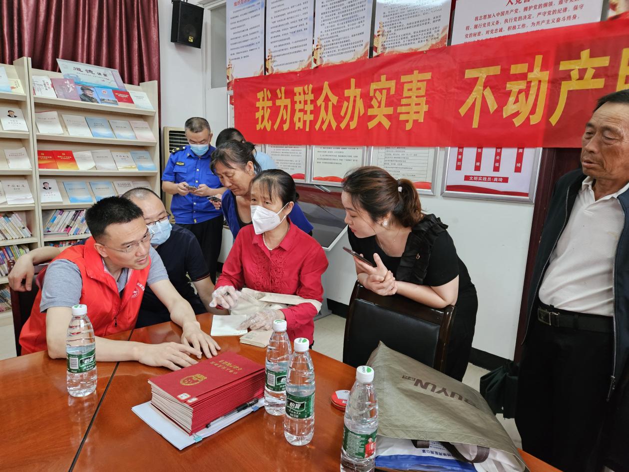 今年4月底,不动产登记中心在与住房保障中心的共同努力下,已经完成昌明小区的首次登记,并对要件齐全、材料到位的第一批次房屋办理了登记,共计20本不动产权证。在活动现场,与业主完成了产权证书交付,为后期继续推进办证树立了模范。