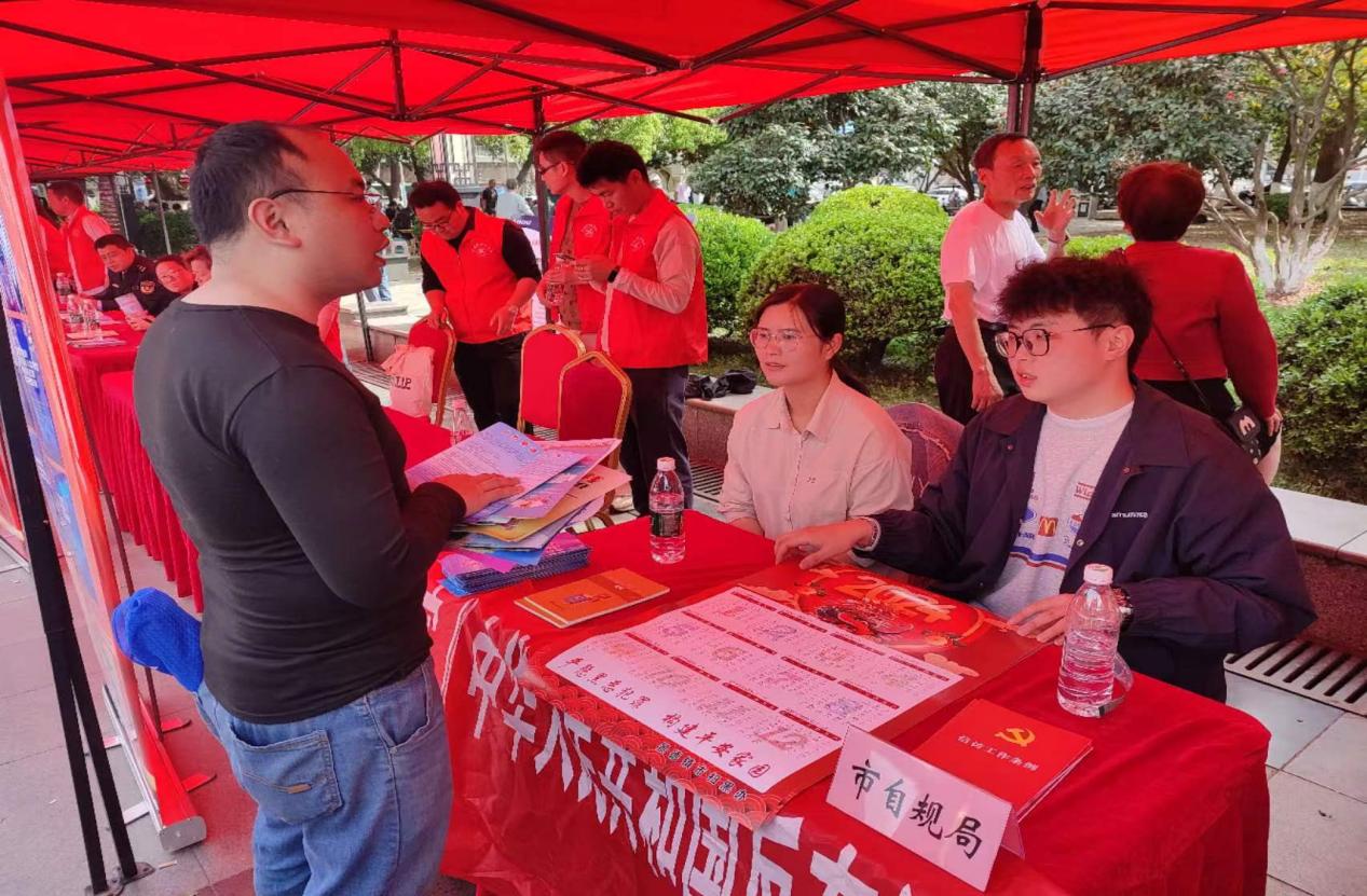 活动现场通过设立服务咨询台,发放自然资源和规划领域管理、平安建设、信访工作法制化和扫黑除恶宣传资料,现场解答群众咨询等方式为广大群众能更好的知法、守法、懂法以及合理运用法律途径保证自己的合法权益奠定了坚实的基础。